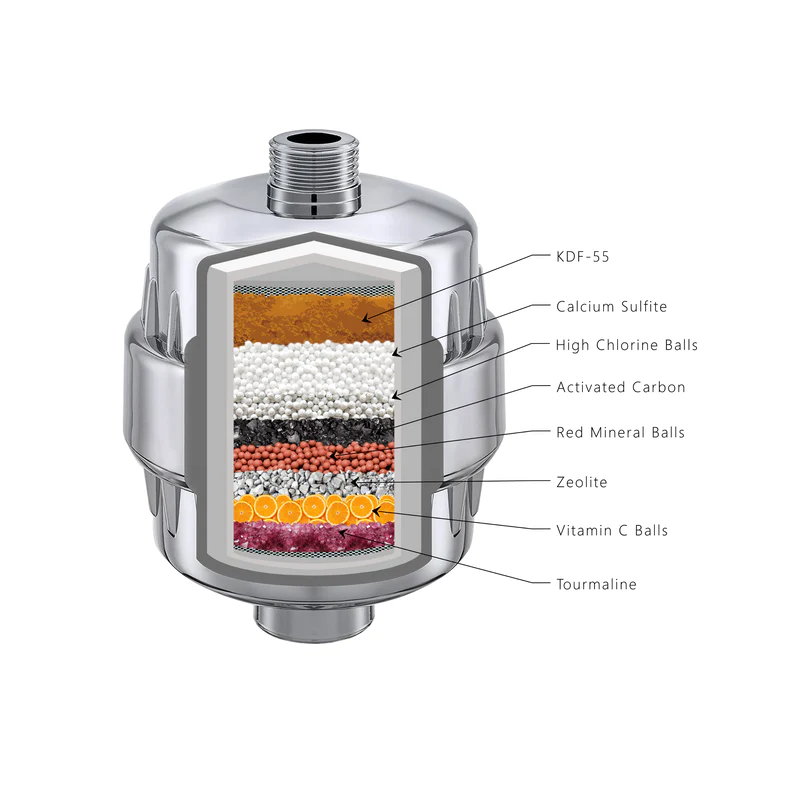 Together, KDF 55, Calcium Sulfite, Activated Carbon, and High Chlorine Balls ensure MAXIMUM filtration with over 95% chlorine removal as well as reducing heavy metals, chemicals, pesticides, and other contaminants from your water